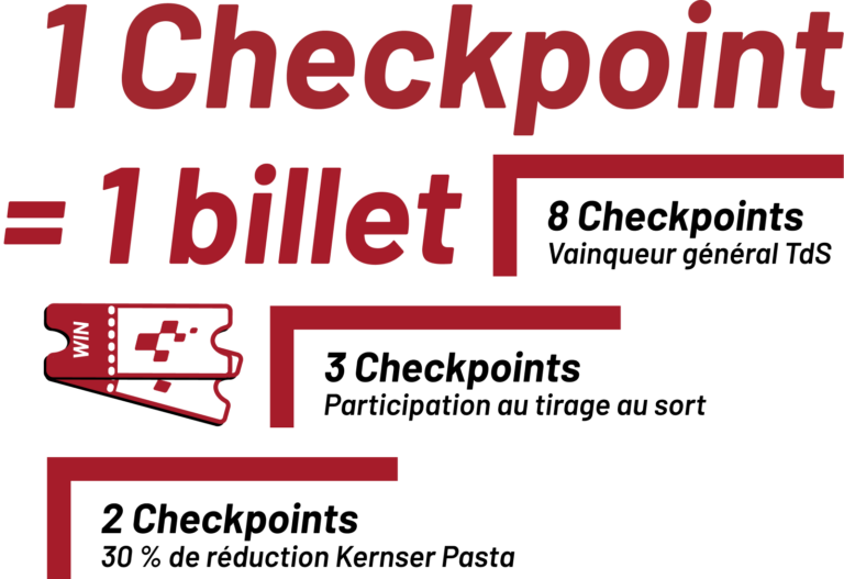 Nouveau en 2026: Dès 3 checkpoints collectés, tu participes automatiquement au tirage au sort. Pour chaque checkpoint, tu reçois 1 ticket, plus tu en collectes, plus tes chances de gagner augmentent.